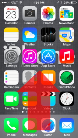 Double tap the home button. A list of recently opened apps will appear at the bottom of the screen. Slide this portion of the screen from left to right. On an iPad, you should see the AirPlay button if it is available. On an iPhone, you will need to swipe from left to right twice. Swiping once will reveal music controls. Swiping again will reveal volume controls, and also AirPlay, if available.