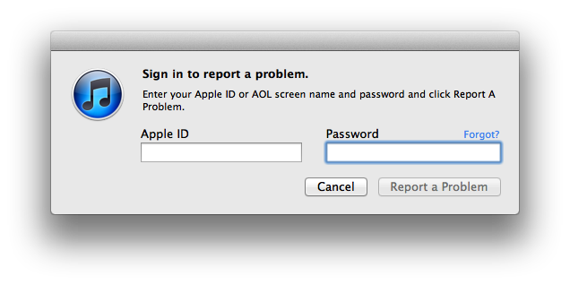 When you receive a copy of your iTunes receipt, there will be a Report a Problem link in your email receipt.